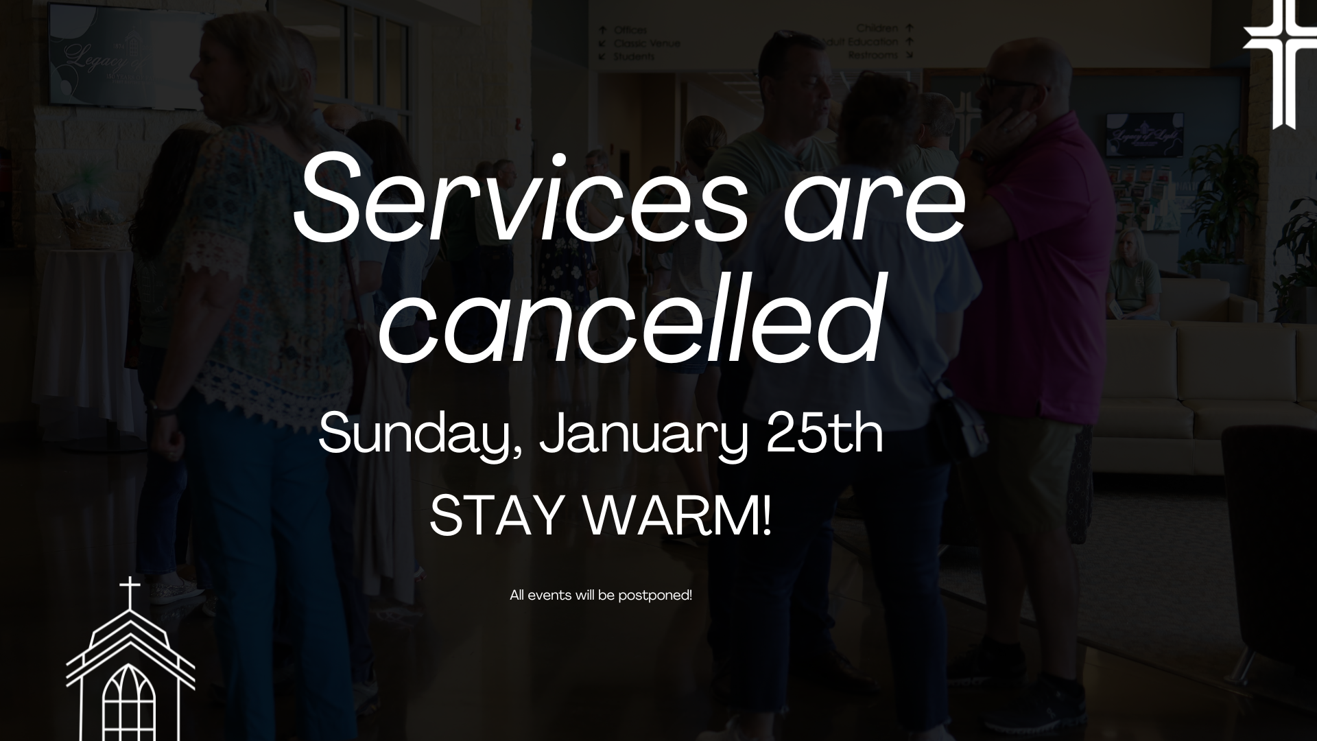 Due to inclement weather, we have made the decision to cancel our regular Sunday services 01/25/26. The safety of our congregation, volunteers, and staff is our top priority!
